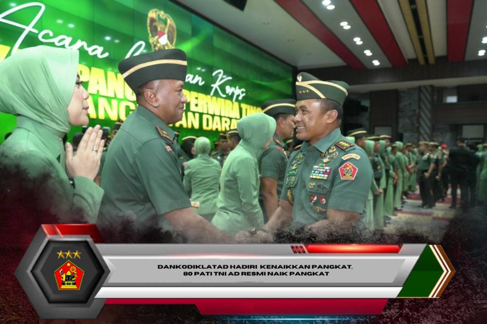 Sebanyak 80 Pati TNI AD resmi menerima kenaikan pangkat sebagai bentuk penghargaan negara atas dedikasi, prestasi dan pengabdiannya di berbagai penugasan. Dari jumlah tersebut, 24 Pati mengemban tugas di dalam struktur organisasi TNI AD, sedangkan 56 lainnya bertugas di luar struktur TNI AD namun tetap memegang amanah penting bagi institusi dan negara.