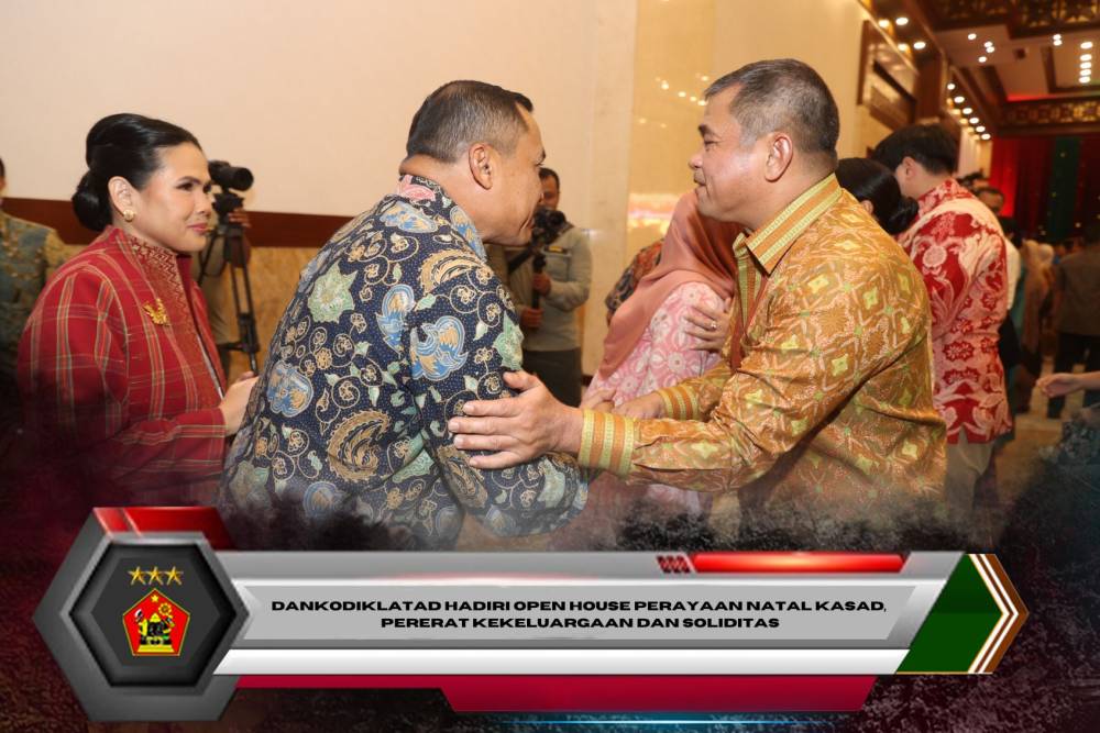 Jakarta. Komandan Kodiklatad Letjen TNI Mohamad Hasan didampingi Ketua Persit PG Kodiklatad Ny. Ririx Hasan menghadiri acara Open House dalam rangka perayaan Hari Natal 2025 yang diselenggarakan oleh Kepala Staf Angkatan Darat (Kasad) Jenderal TNI Maruli Simanjuntak, M.Sc., bertempat di Balai Kartini, Kamis (25/12/2025).