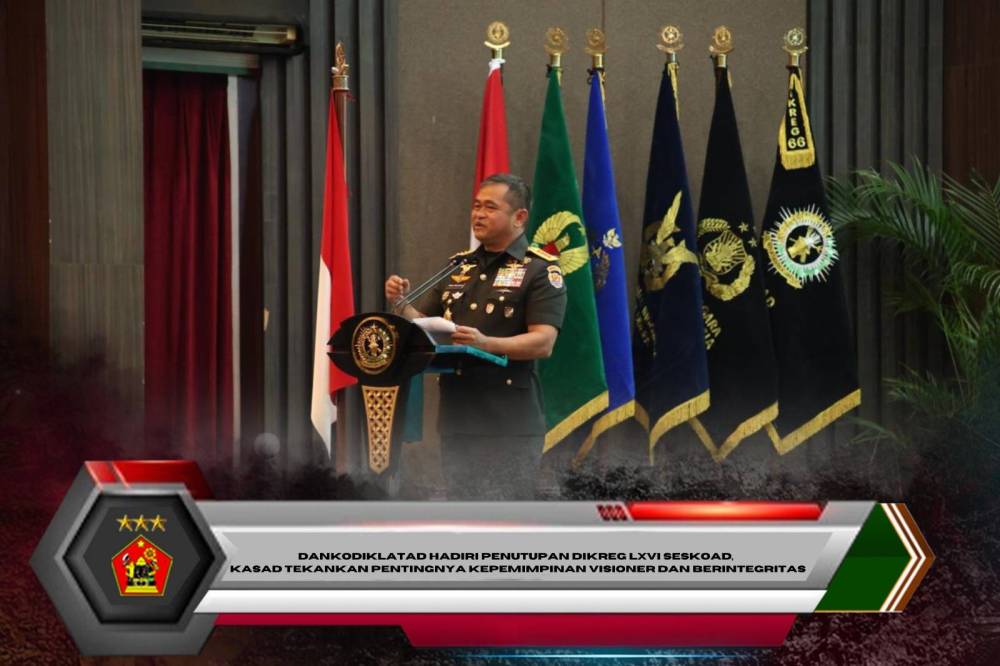 Bandung. Komandan Kodiklatad Letjen TNI Mohamad Hasan didampingi Ketua Persit KCK Gabungan Kodiklatad Ny. Ririx Hasan menghadiri Upacara Penutupan Pendidikan Reguler (Dikreg) LXVI Seskoad TA 2025 yang dipimpin langsung oleh Kepala Staf Angkatan Darat (Kasad) Jenderal TNI Maruli Simanjuntak, M.Sc., bertempat di Gedung Prof. Dr. Satrio Seskoad, Selasa (4/11/2025).