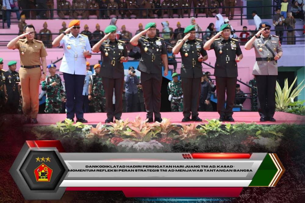 Cimahi. Komandan Kodiklatad Letjen TNI Mohamad Hasan menghadiri upacara peringatan Hari Juang TNI AD Tahun 2025 yang dipimpin langsung oleh Kepala Staf Angkatan Darat (Kasad) Jenderal TNI Maruli Simanjuntak, M.Sc., bertempat di Lapangan Manunggal Brigif 15 Kujang II Kodam III/Siliwangi, Senin (15/12/2025).