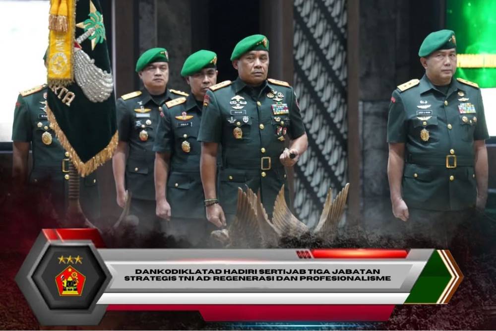 Jakarta - Komandan Kodiklatad Letjen TNI Mohamad Hasan menghadiri acara serah terima jabatan tiga jabatan strategis TNI AD, yaitu Pangdam Jaya, Pangdam IV/Diponegoro, dan Danpussenarhanud, yang dipimpin langsung oleh Kepala Staf Angkatan Darat (Kasad) Jenderal TNI Maruli Simanjuntak. Acara tersebut berlangsung di Aula Jenderal Besar A.H Nasution Mabesad pada Kamis (3/7/2025).