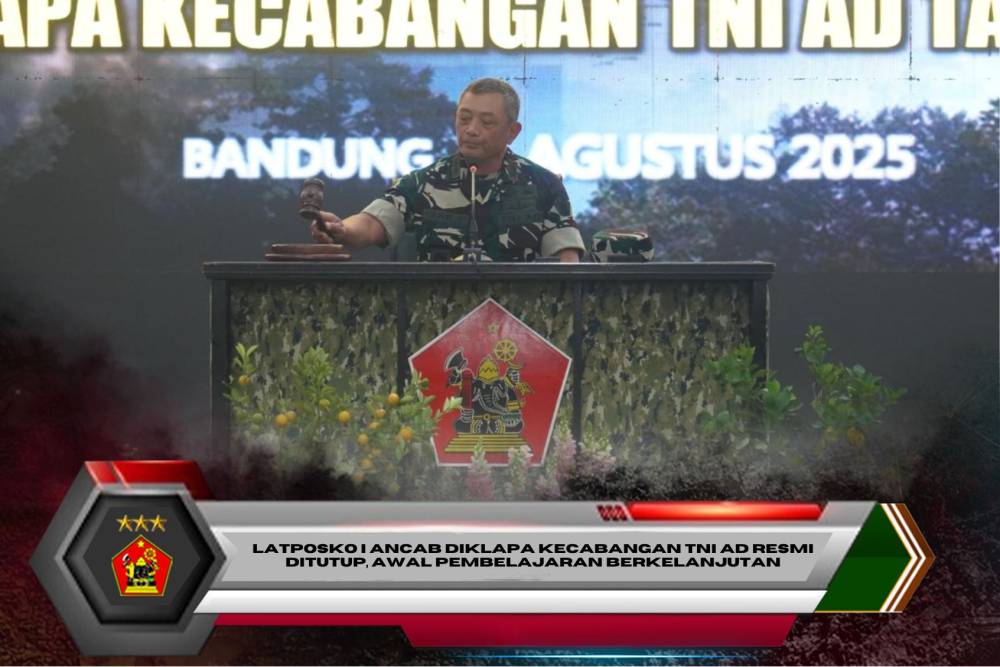Bandung, Komandan Kodiklatad Letjen TNI Mohamad Hasan diwakili Wadan Kodiklatad Mayjen TNI Izak Pangemanan, M.Tr. (Han) secara resmi menutup Latihan Posko I sekolah Antar Kecabangan (Ancab) tingkat Brigade Perwira Siswa Diklapa Kecabangan TNI AD yang berlangsung di Balai Prajurit Oentoro Pusdikku Ditkuad. Kamis (7/8/2025)