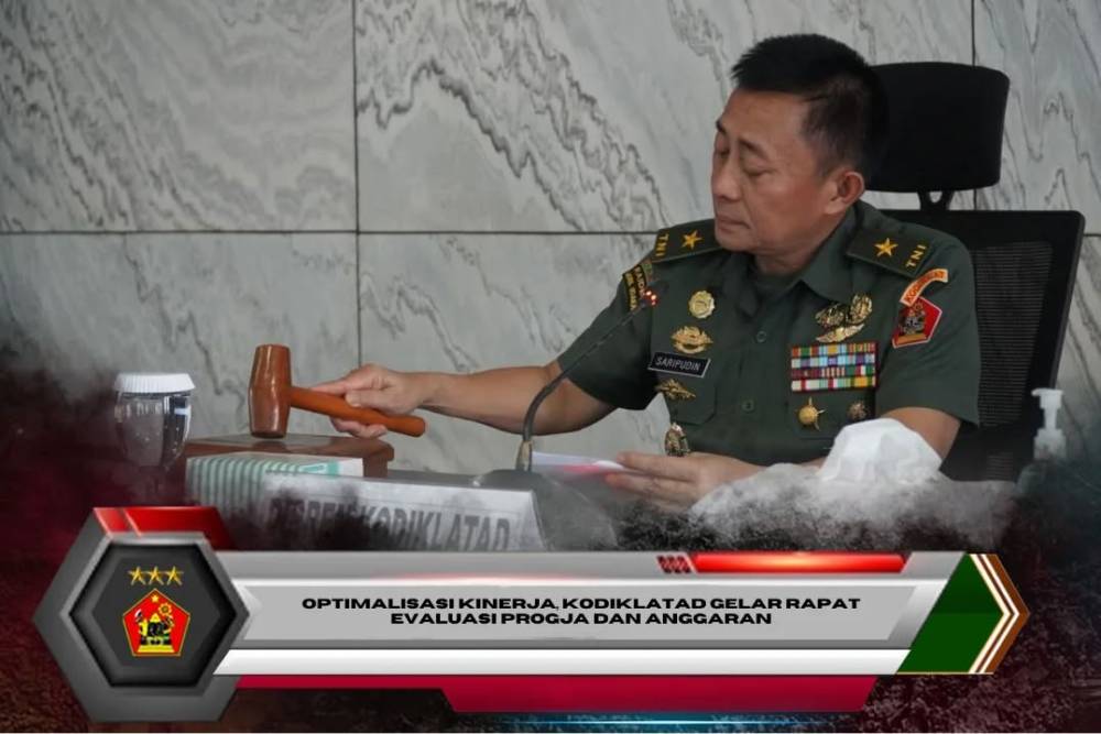 Dalam rangka meningkatkan efektivitas pelaksanaan Program Kerja dan Anggaran tahun berjalan 2025, Kodiklatad menggelar rapat evaluasi Program Kerja dan Anggaran semester I TA 2025. Rapat yang dibuka oleh Direktur Perencanaan (Dirren) Kodiklatad Brigjen TNI Saripudin ini berlangsung di Gedung Ganesha 3 Kodiklatad pada Kamis (17/7/2025).
