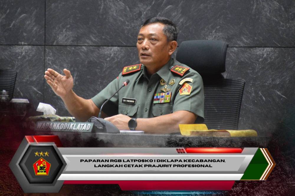 Bandung. Komandan Kodiklatad Letjen TNI Mohamad Hasan yang diwakili Wadan Kodiklatad Mayjen TNI Izak Pangemanan, M.Tr.(Han), menerima Paparan RGB Latposko I Sekolah Antar Kecabangan (Ancab) Tingkat Brigade Pasis Diklapa Kecabangan TNI AD Gelombang II TA 2025 yang diselenggarakan di Gedung Ganesha Kodiklatad, Senin (17/11/2025).