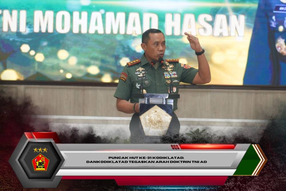 Bandung. Komandan Kodiklatad Letjen TNI Mohamad Hasan memimpin Acara Syukuran sebagai puncak peringatan Hari Ulang Tahun (HUT) ke-31 Kodiklatad yang digelar di Aula Moh. Toha Kodiklatad, Rabu (10/12/2025). Peringatan HUT tahun ini dilaksanakan melalui berbagai pertandingan olahraga yaitu : bola voli, tenis lapangan, tenis meja dan lomba lari (BabatuRun). Selain itu juga dilaksanakan doa bersama, ziarah ke TMP hingga acara syukuran.
