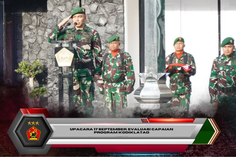 Bandung. Komandan Kodiklatad Letjen TNI Mohamad Hasan diwakili Dirdok Kodiklatad Brigjen TNI Teguh Pudji Rahardjo selaku Inspektur Upacara (Irup) memimpin jalannya upacara bendera tanggal 17 September 2025 yang digelar di Lapangan Makodiklatad, Rabu (17/9/2025).