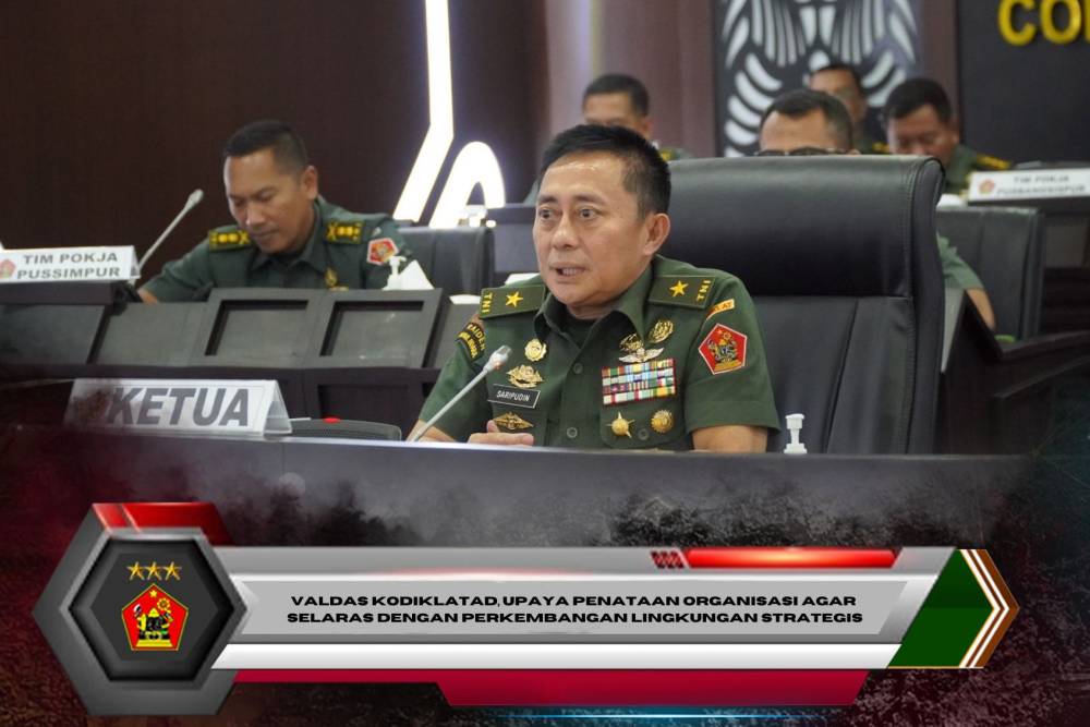 Bandung. Direktur Perencanaan (Dirren) Kodiklatad Brigjen TNI Dr. Saripudin, S.Sos., M.Si., Selaku Ketua Tim Pokja menerima paparan Validasi Orgas Kodiklatad, Puslatbangsispur, Pusbangsispur, Puslatpur dan Pussimpur Kodiklatad yang berlangsung di Ruang Command Center Makodiklatad, Selasa (6/1/2026).