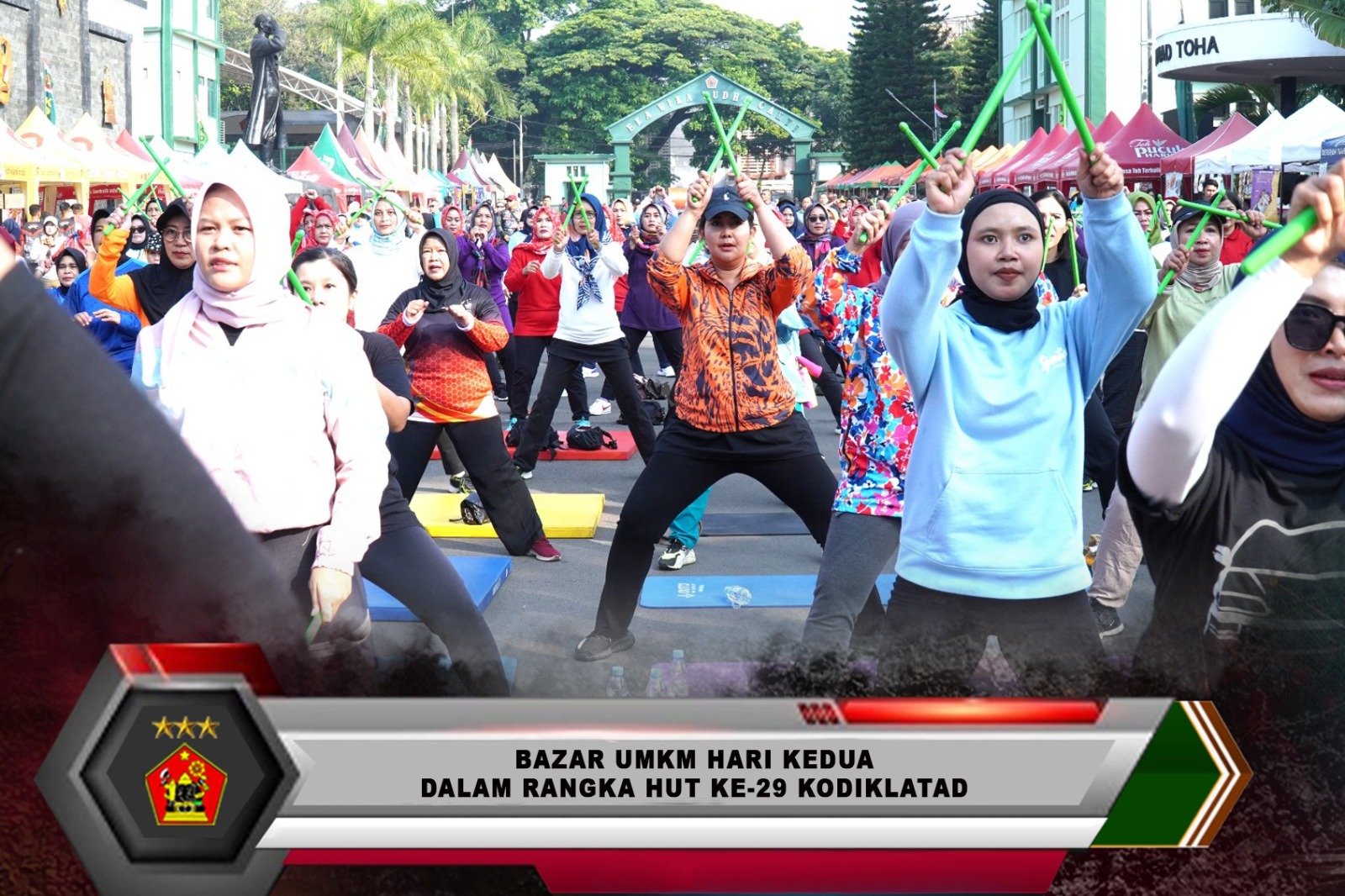 Bandung. Pada hari kedua kegiatan Bazar UMKM yang dilaksanakan di Kodiklatad diawali dengan senam Pound fit yang diikuti oleh warga Kodiklatad dan masyarakat umum yang hadir dengan menggunakan alat semacam stik (ripstix) dan musik sebagai komponen utamanya yang memadukan dengan gerakan aerobik dan yoga. Sabtu (16/12/2023)