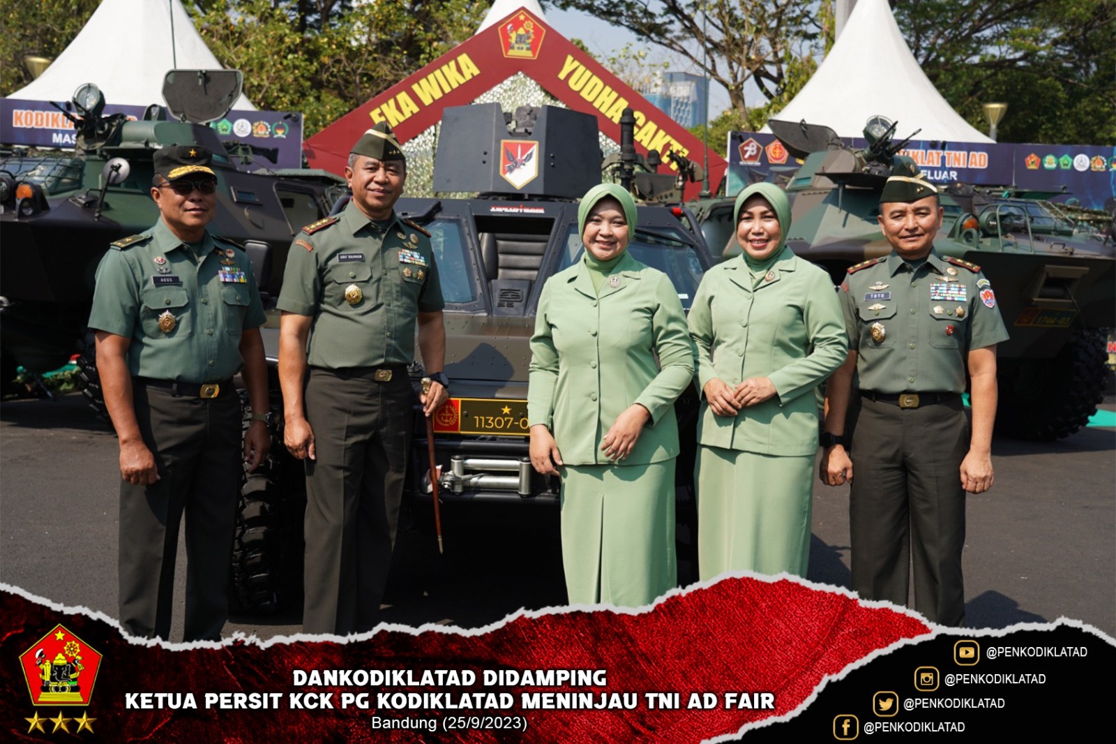 Diawali dengan kunjungan ke stand Kodiklatad, Dankodiklatad beserta isteri mencoba langsung alat simulasi pandang yang dikembangkan oleh Pussimpur Kodiklatad dan melihat langsung demonstrasi drone elang garapan Bamasis Poltekad Kodiklatad.