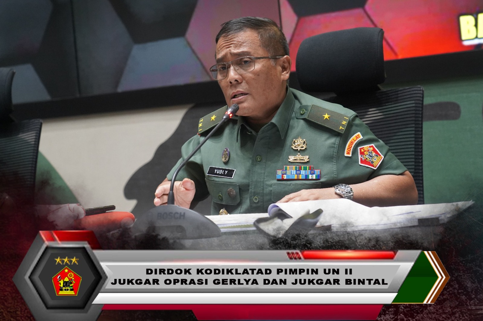 Bandung. Direktur Doktrin Kodiklatad, Brigjen TNI Yudi Yulistyanto, M.A. mewakili Wadan Kodiklatad, Mayjen TNI Kunto Arief Wibowo, S.I.P. memimpin Rapat UN II Jukgar Operasi Gerilya dan Jukgar Bintal bertempat di ruang Rapat Ganesha Kodiklatad. Kamis (30/11/2023)