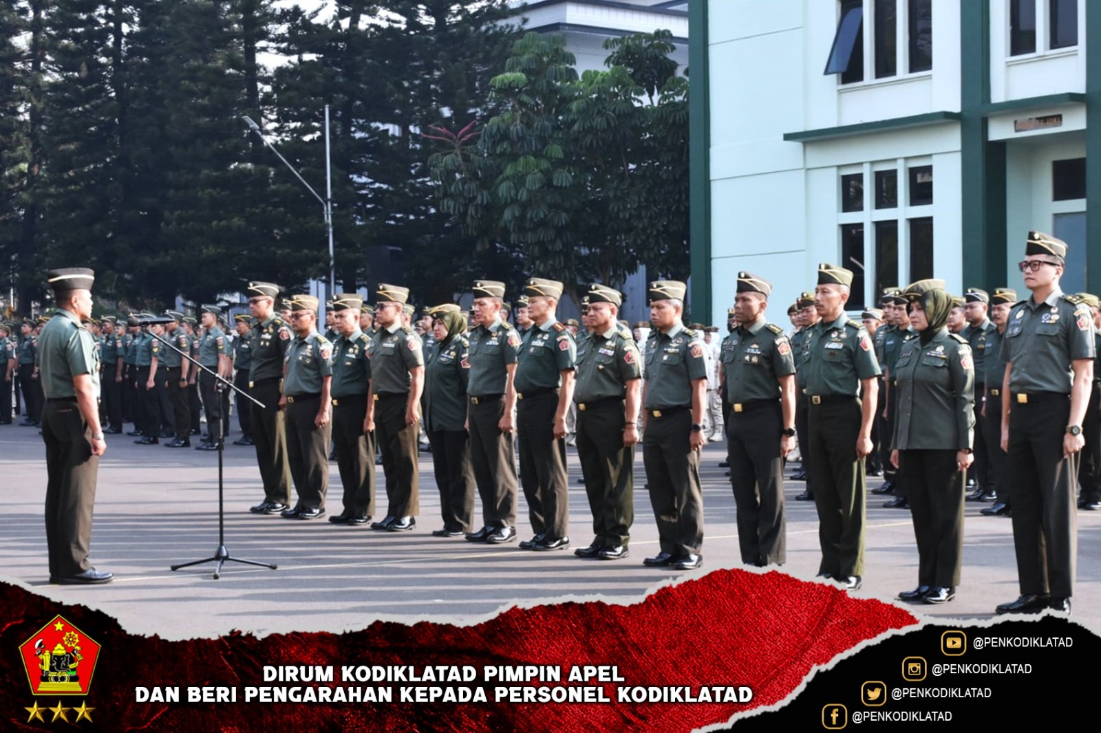 Diawali dengan pemeriksaan kehadiran personel Makodiklatad, Dirum memberikan sejumlah penekanan dan pengarahan kepada para peserta apel. Hal ini dilaksanakan sebagai bentuk pembinaan internal di Makodiklatad yaitu dengan memberikan penekanan dan motivasi kepada personel Makodiklatad. Diharapkan personel militer dan PNS tetap memiliki disiplin dan etos kerja yang baik. "Hal ini juga merupakan wujud syukur terhadap status dan karir yang disandang oleh setiap personel Makodiklatad" ,ujarnya.