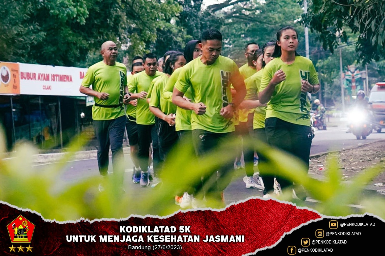 Bandung. Dalam upaya membudayakan gaya hidup sehat dan menjaga kebugaran tubuh, Komandan Kodiklatad Letjen TNI Arif Rahman, M.A. ditemani Wadan, para PJU Kodiklatad serta Team Tradoc Runners Kodiklatad melaksanakan Olah Raga Lari 5K yang diawali dengan peregangan di lapangan Makodiklatad. Selasa (27/6/2023)