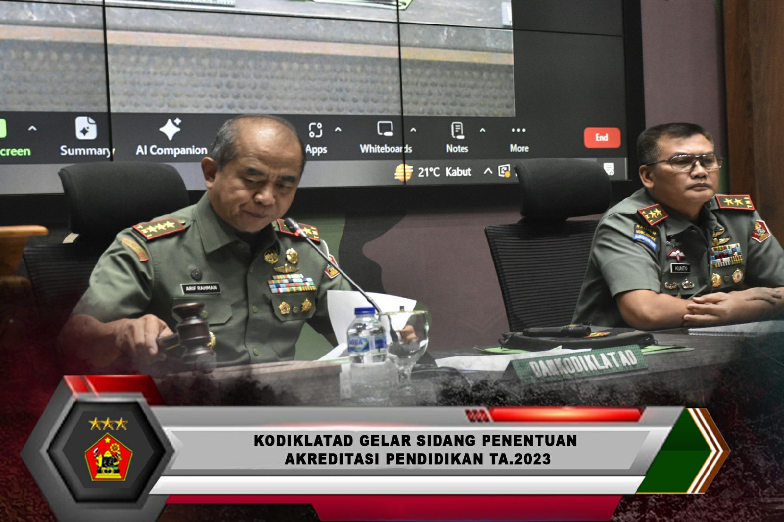 Bandung. Komandan Kodiklatad, Letjen TNI Arif Rahman, M.A. memimpin kegiatan Sidang Penentuan Akreditasi Pendidikan TA 2023 secara tatap muka dan zoom meeting bertempat di Ruang Rapat Ganesha Kodiklatad. Kegiatan ini merupakan proses evaluasi dan penilaian mutu terhadap program dan lembaga pendidikan yang dilakukan oleh tim asesor. Senin (13/11/2023)