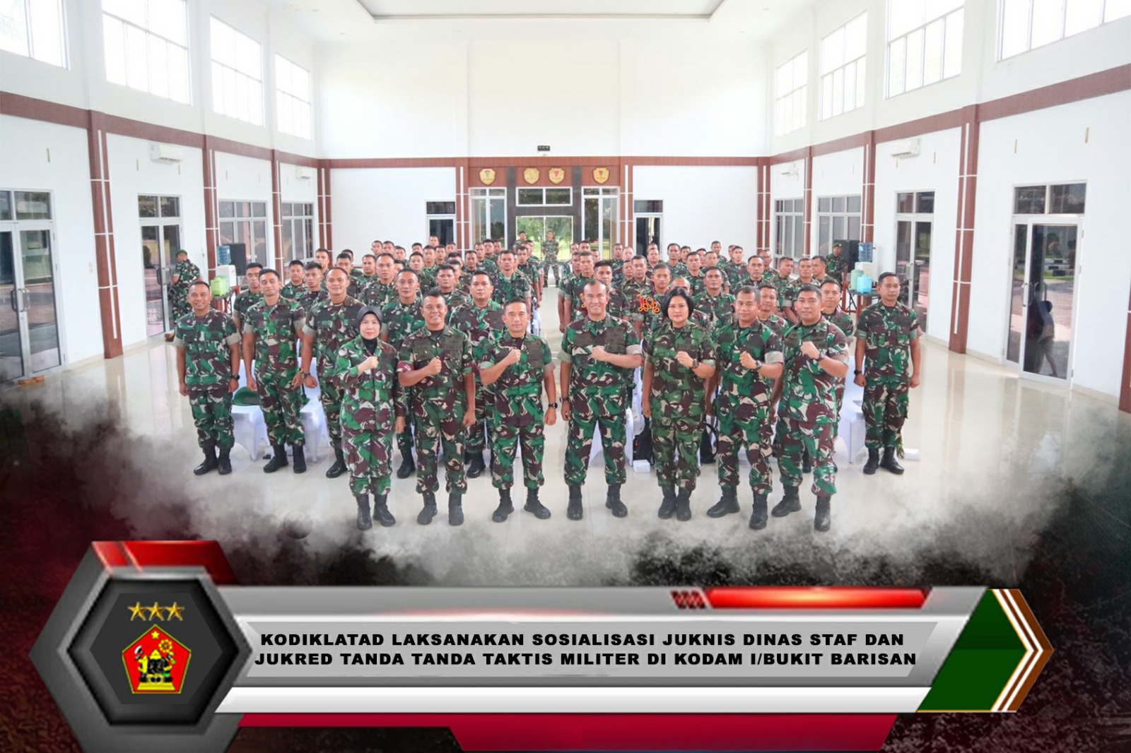 Medan, Wairkodiklatad , Brigjen TNI Dr. Nefra Firdaus, S.E., M.M didampingi Pabandokjuk Sdirdok Kodiklatad, Pabandya-2/Dok Sdirdok Kodiklatad serta Pabanda Sundok Sdirdok Kodiklatad melaksanakan kegiatan sosialisasi Juknis Dinas Staf dan Jukref Tanda-Tanda Taktis Militer di Kodam I/Bukit Barisan.