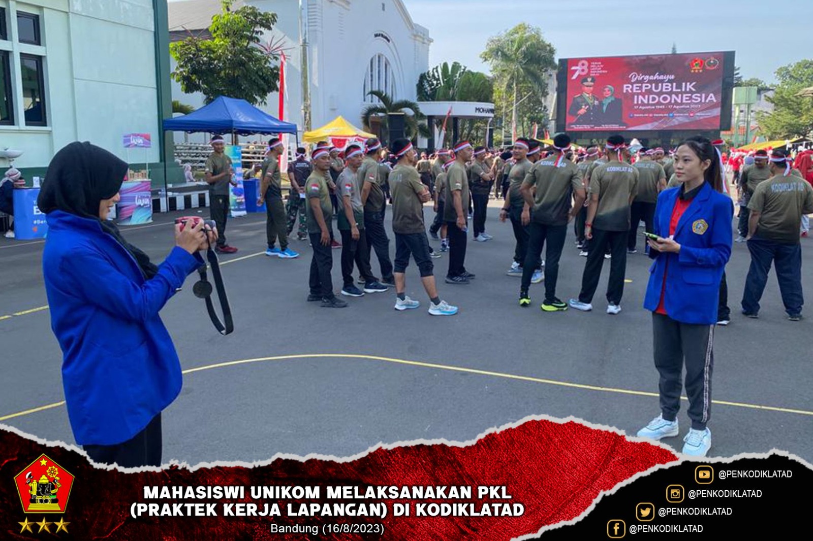 Bandung. Kodiklat TNI AD menerima tiga orang mahasiswi dari Prodi Ilmu Komunikasi FISIP Universitas Komputer Indonesia untuk melaksanakan Praktek Kerja Lapangan (PKL) di lingkungan Staf Penerangan Kodiklatad. Pada hari ini tiga peserta PKL tersebut ikut terlibat dalam proses liputan, reportase dan editing kegiatan dari acara olah raga dan aneka lomba dalam rangka HUT RI ke-78 yang diselenggarakan di lapangan hitam Makodiklatad. (16/08/2023)