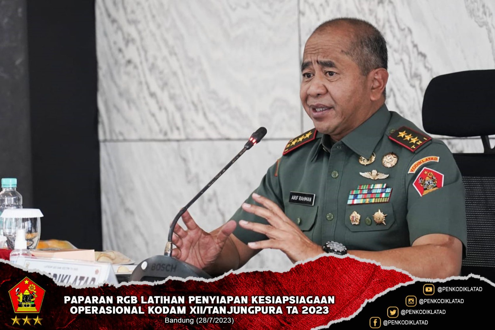 Dalam sambutannya Dankodiklatad menyampaikan bahwa latihan operasi ini dilaksanakan untuk tugas perbantuan TNI kepada Pemda yang dilaksanakan Kodam XII/Tpr dalam penanganan situasi dan peristiwa konflik yang mencakup pencegahan dan penghentian serta pasca konflik. Untuk itu diperlukan latihan kesiapsiagaan operasional Kodam XII/Tpr demi mewujudkan stabilitas keamanan nasional di daerah.
