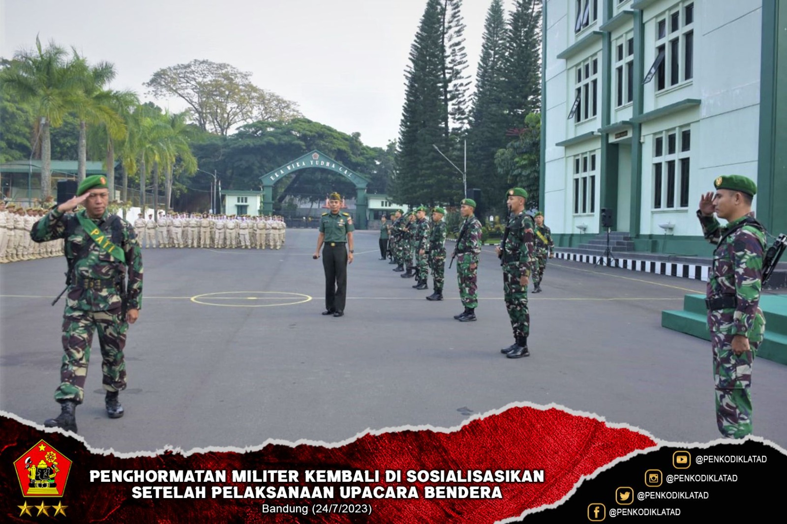Bandung. Pelaksanaan upacara bendera rutin dilaksanakan setiap minggunya guna menumbuhkan sikap disiplin para personel Militer dan PNS Makodiklatad. Pabanlat Sdirum Kodiklatad, Kolonel Inf Khairuddin Fikri Siregar memimpin jalannya Upacara Bendera Mingguan bertempat di Lapangan Upacara Kodiklatad. Senin (24/7/2023)