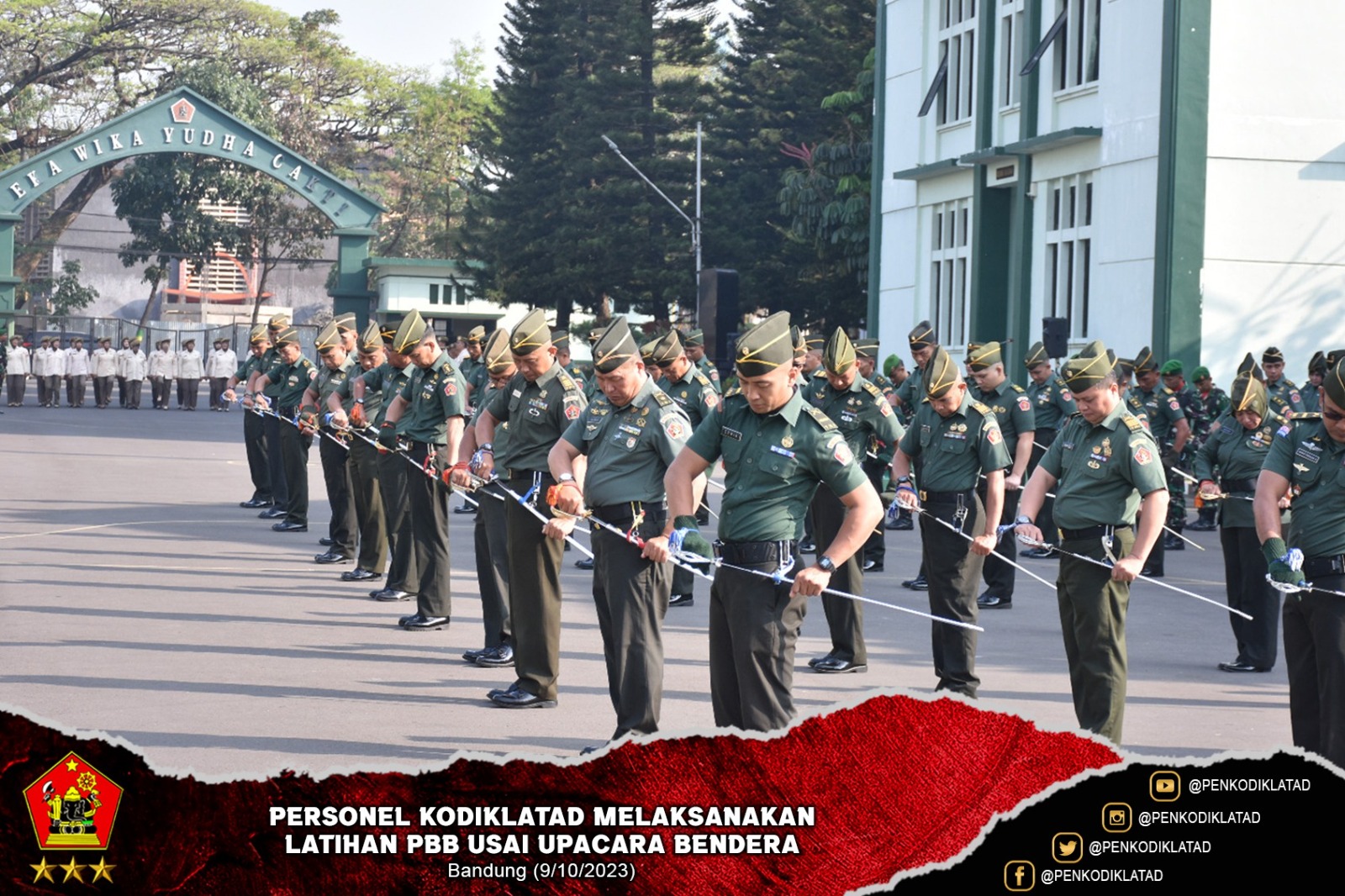 Bandung. Upacara Bendera Minggu ke-2 di Bulan Oktober 2023 dipimpin oleh Paban Permildas Sdirdok Kodiklatad Kolonel Kav Asep Ridwan, S.A.P., M.I.P. bertempat di Lapangan Upacara Makodiklatad. Senin (9/10/2023)