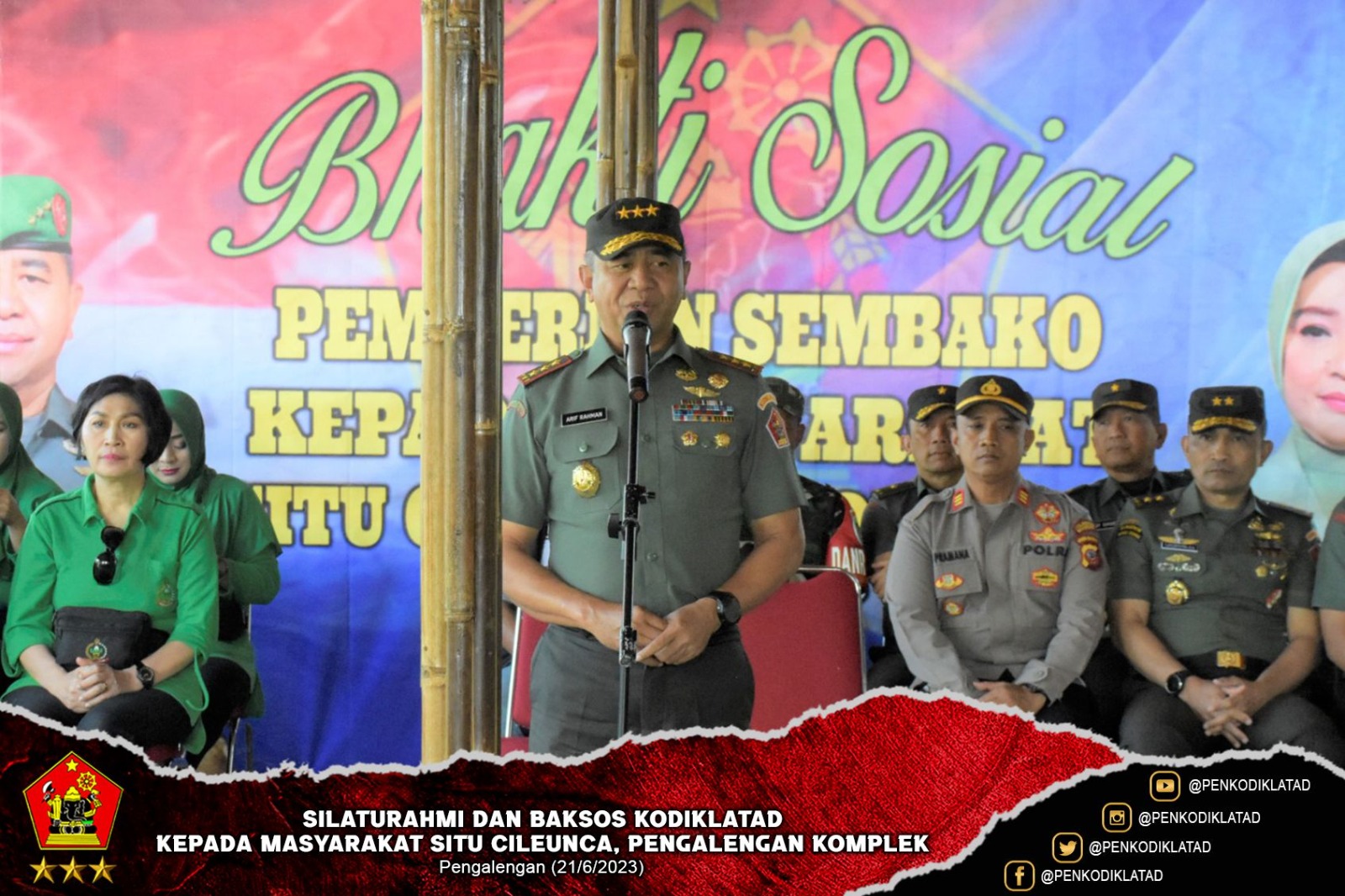 Situ Cileunca. Komandan Kodiklatad Letjen TNI Arif Rahman, M.A. didampingi Ketua Persit KCK PG Kodiklatad Ny. Mia Arif Rahman beserta para PJU dan Team Tradoc Runners melaksanakan Silaturahmi dan Bakti Sosial kepada masyarakat Situ Cileunca, Pangalengan Komplek. Kamis (22/6/2023)