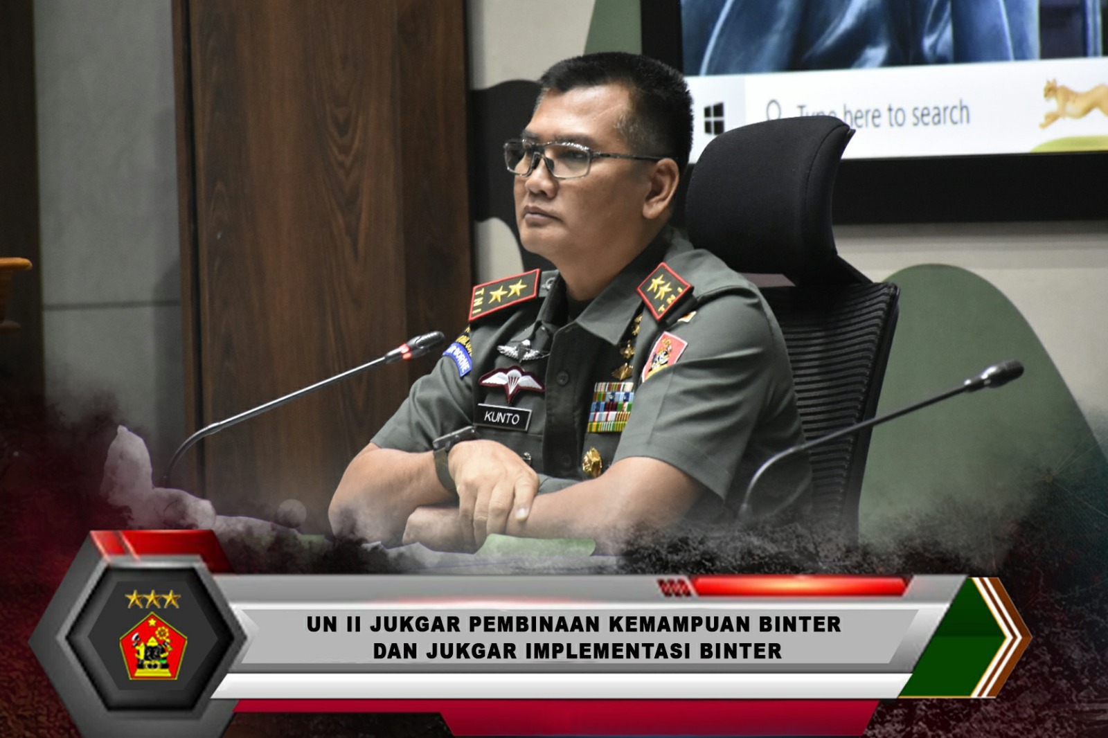 Bandung. Wakil Komandan Kodiklatad, Mayjen TNI Kunto Arief Wibowo, S.I.P. memimpin Rapat UN II Jukgar Pembinaan Kemampuan Binter dan Jukgar Implementasi Binter bertempat di Ruang Rapat Ganesha Kodiklatad. Senin (4/12/2023)