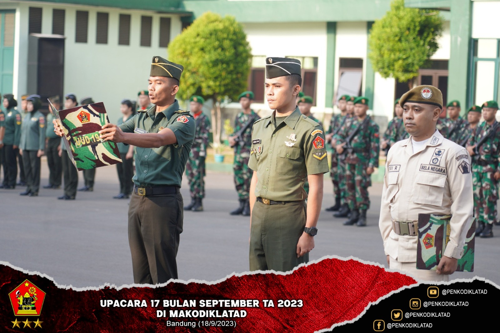 Bandung. Upacara Bendera yang dilaksanakan setiap minggunya merupakan kegiatan penting dalam membentuk karakter dan kepribadian para Prajurit. Direktur Pendidikan Kodiklatad, Brigjen TNI Dwi Lagan Safrudin, S.I.P., M.M. memimpin Upacara Bendera 17 Bulan September 2023 bertempat di Lapangan Upacara Kodiklatad yang diikuti oleh segenap personel Militer dan PNS Kodiklatad. Senin (18/9/2023)