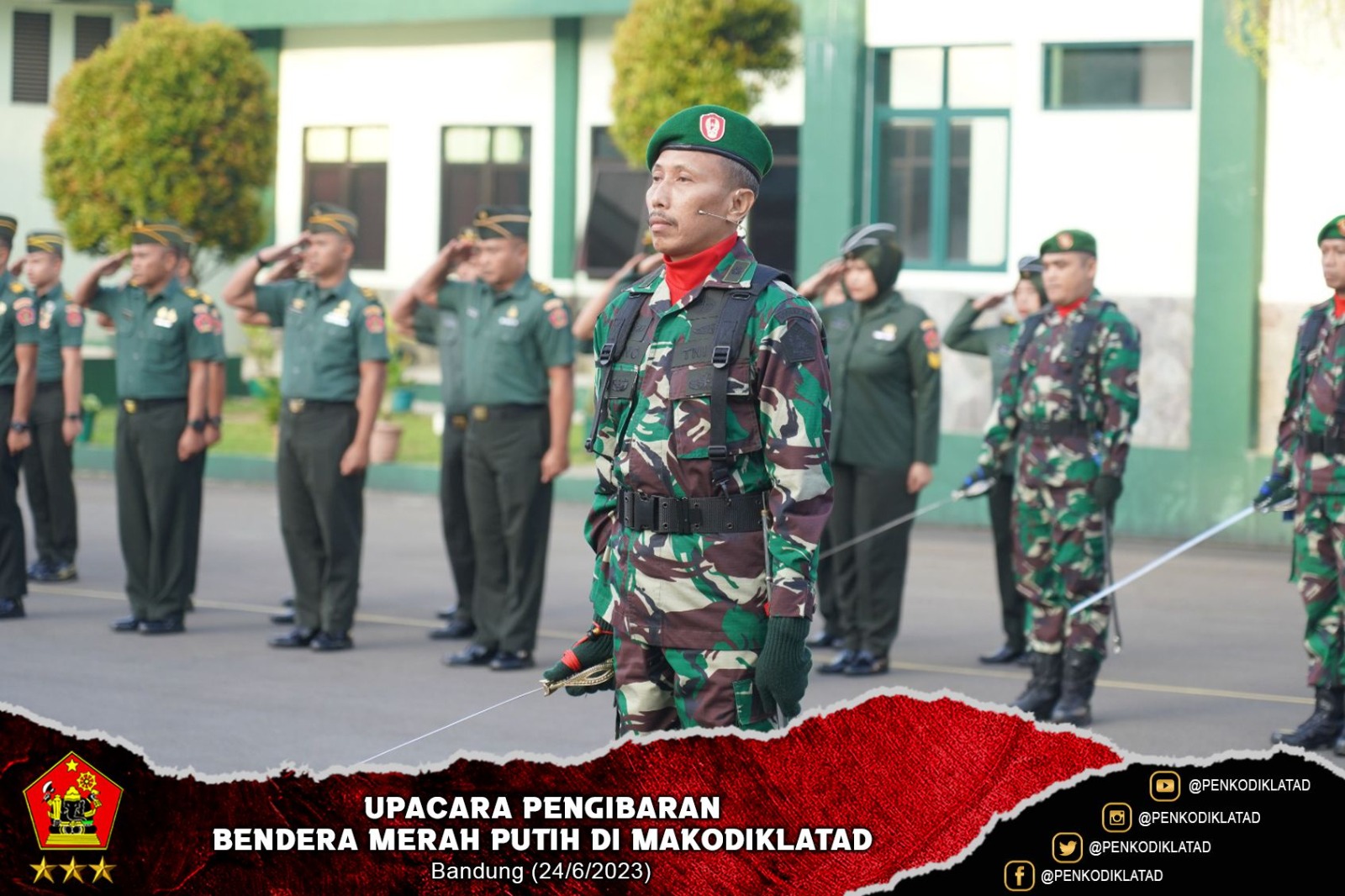 Bandung. Pabanpam Sdirum Kodiklatad, Kolonel Inf Mahesa Fitriadi, S.A.P., M.M. bertindak selaku Inspektur Upacara memimpin jalannya Upacara Bendera Merah Putih bertempat di Lapangan Hitam Makodiklatad. Senin (26/6/2023)