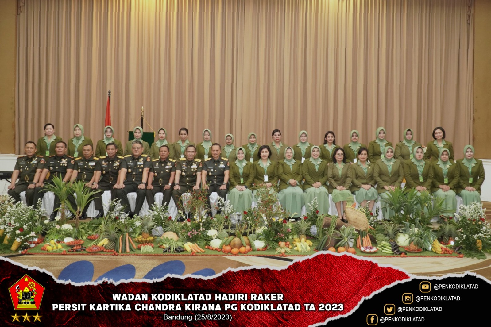 Bandung. Wadan Kodiklatad, Mayjen TNI Candra Wijaya, M.A. mewakili Komandan Kodiklatad, Letjen TNI Arif Rahman, M.A. membuka Rapat Kerja Persit Kartika Chandra Kirana PG Kodiklatad TA 2023 di Aula M. Toha Kodiklatad. Raker ini dilaksanakan dalam rangka meningkatkan kualitas kinerja Persit Kartika Chandra Kirana dalam melaksanakan tugas pokok. Jum’at (25/8/2023)