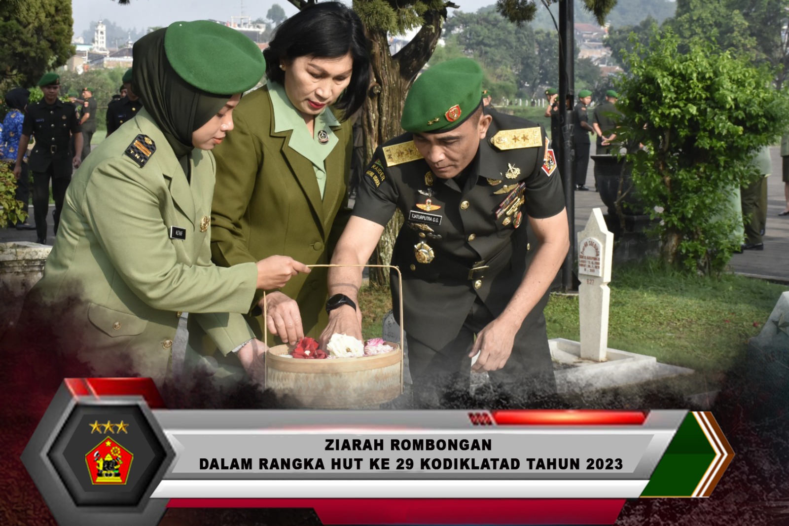 Bandung. Dalam rangka memperingati Hari Ulang Tahun Ke-29. Pada hari ini Inspektur Kodiklatad Mayjen TNI Tjaturputra Gunadi, S.Sos., M.M., M.Tr (Han) memimpin Ziarah Rombongan ke Taman Makam Pahlawan (TMP) Cikutra-Bandung. Rabu (6/12/2023)